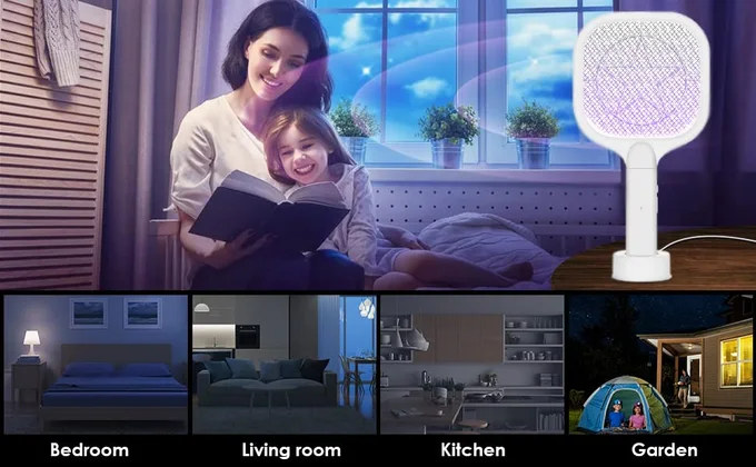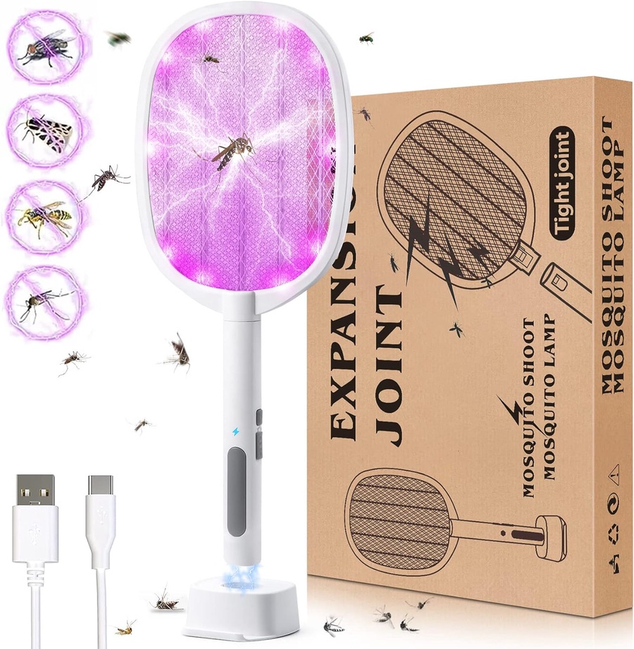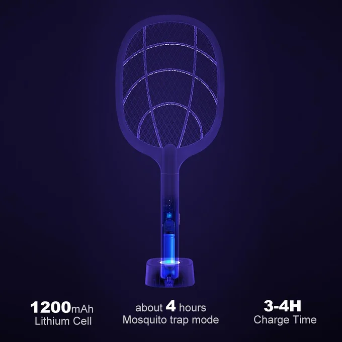 مضرب صاعق الناموس والحشرات الطائرة بقوة عالية يقضي فورًا على الناموس والذباب دون مواد كيميائية، آمن وسهل الاستخدام ومثالي للمنزل والرحلات والحدائق.